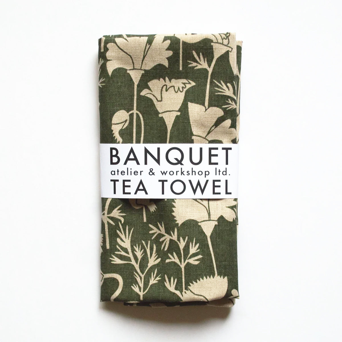 Screen printed design on a 100% linen, 20 x 28 inch tea towel. Linen is naturally anti-bacterial and washes up beautifully, cold water and hang to dry because its better for our universe.