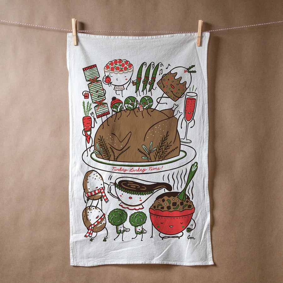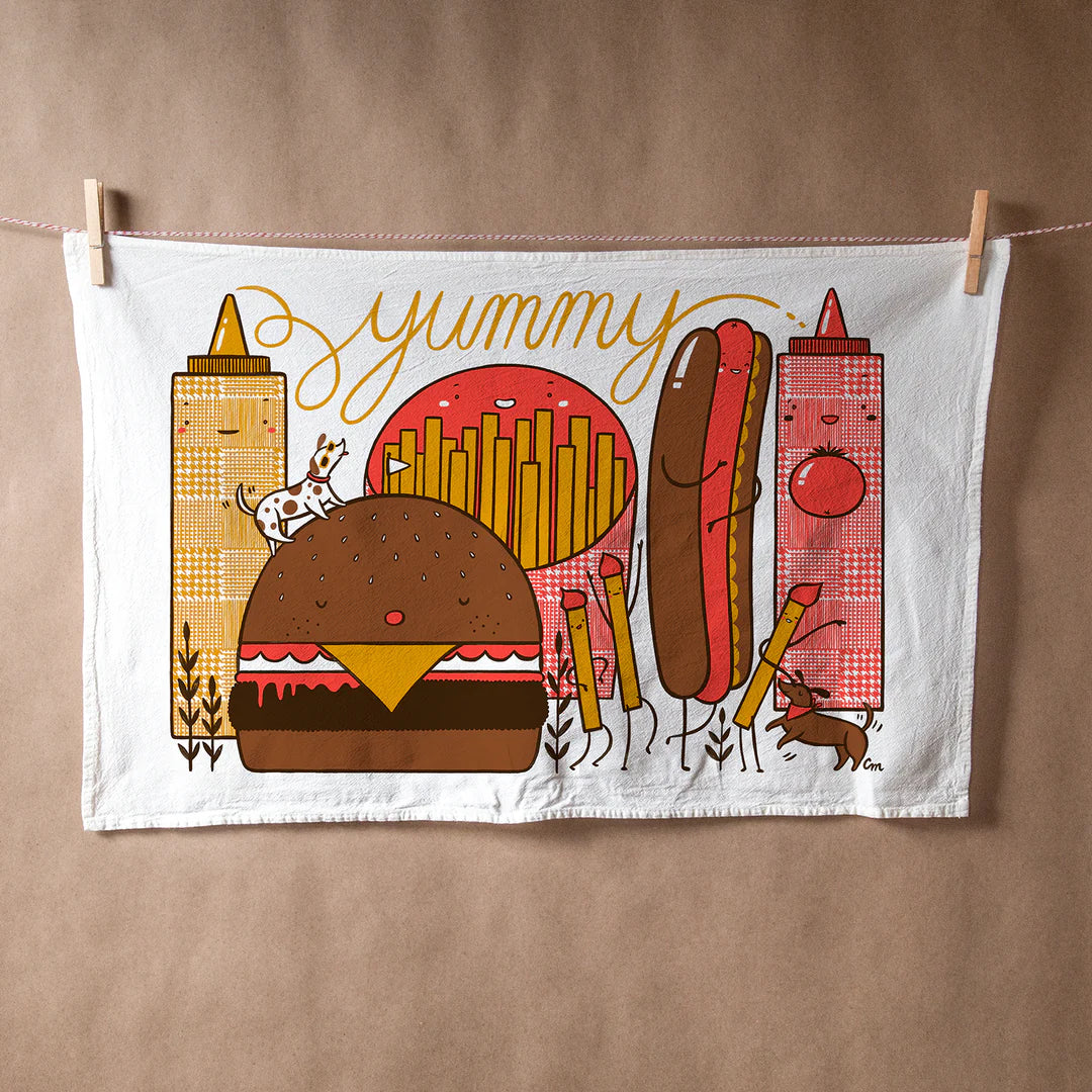 This Claire Manning Tea Towel absorbs water easily and dries fast. Hand-printed in Toronto, no two are alike! A great addition to any kitchen.