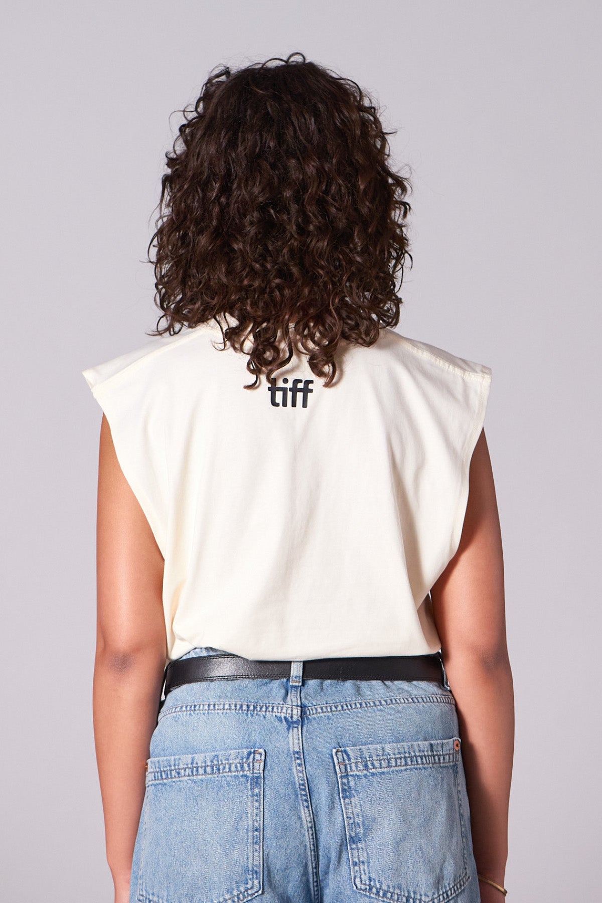 Elevate your summer style with our #TIFF24 Logo Sleeveless Tee, featuring a vibrant front design and TIFF logo on the back. Perfect for hot summer days.