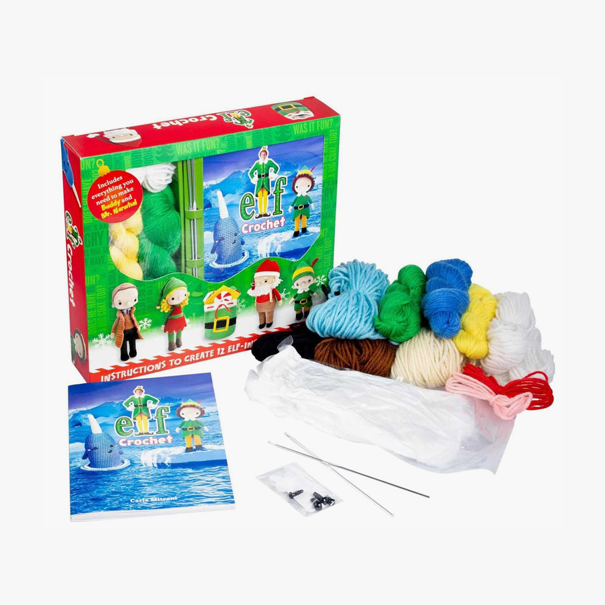 Liven up your home with some cute and practical crochet projects inspired by the 2003 comedy film Elf, starring Will Ferrell. Included in this kit are all the materials you need to make Buddy the Elf and Mr. Narwhal: 10 colours of yarn, a crochet hook, safety eyes, embroidery floss, a tapestry needle, and fiberfill stuffing. You’ll find step-by-step instructions with full-colour images for making 12 projects that are sure to bring on the holiday cheer, such as Christmas ornaments, a gift bag, a mug cozy, and colourful granny squares. These fun amigurimi projects are perfect to give as gifts to fans of the film, or to add a bit of cheer to any room during the holidays.