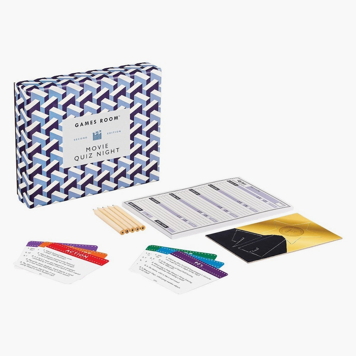 Invite everyone over and quiz your way to Hollywood with this Movie Compendium from Games Room! Choose a host, split into teams and work your way through 10 rounds of questions. With topics including 80s, 90s, Rom Coms and Sci-fi, everyone will get the chance to score high and play the starring role! The perfect gift for any film fanatic, the set comes with instructions, x5 Pencils, x200 Question Cards, x1 Score Pad and x1 Trophy and is packaged in a trendy geometric print box.