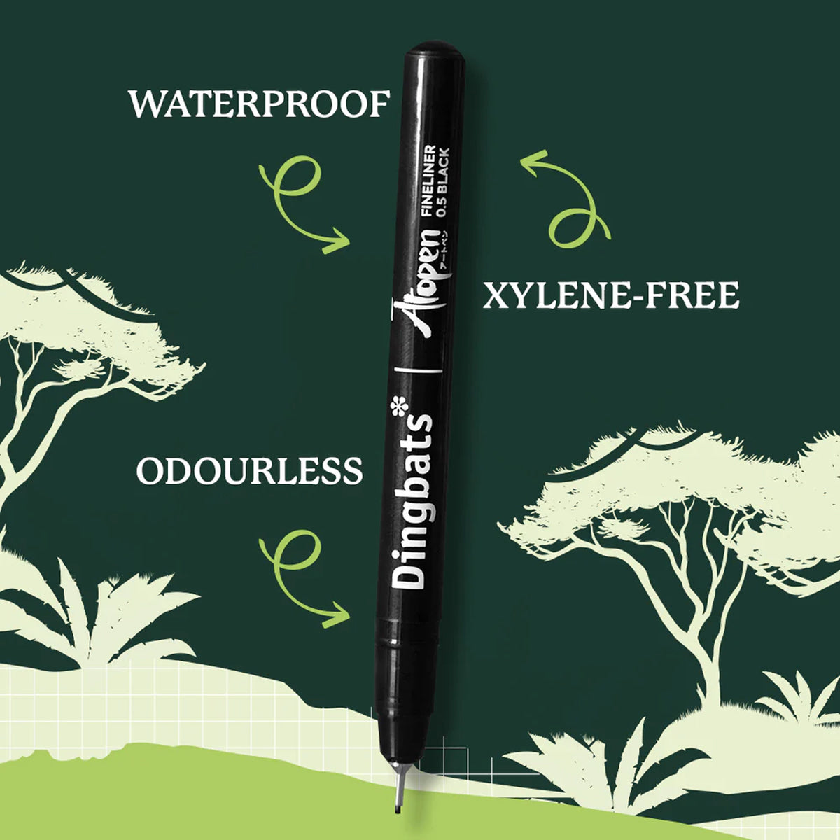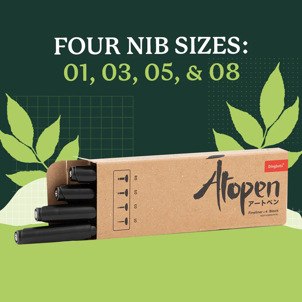 The Dingbats* Ātopen Fineliner offers four nib sizes (01 03 05 08) and smudge-free results with steady ink flow. Ideal for journaling, calligraphy, bujo, doodling, or manga.