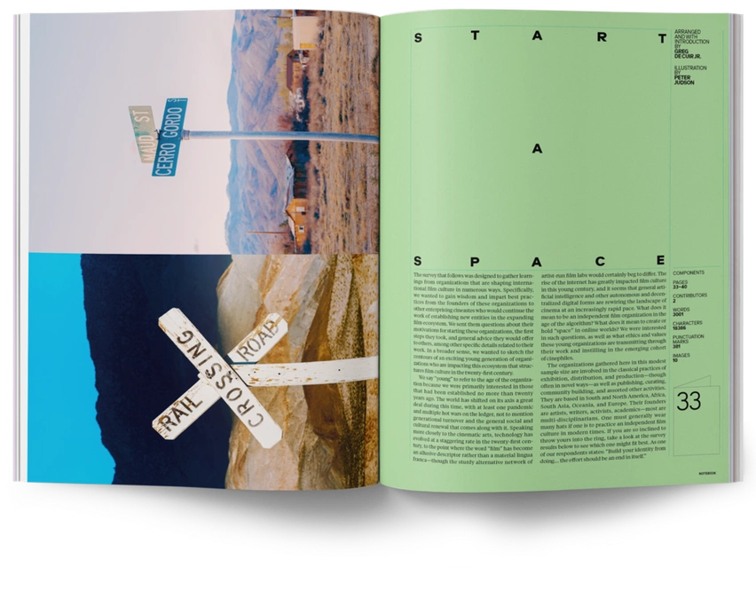 Ever dreamed of drawing cartoons? Did you ever wonder how movie blood is made? Are there more sustainable ways to make film? Notebook Magazine ISSUE 5 is dedicated to doing, and expanding your creative capabilities, whether that means learning to fall flat on your face (without getting hurt), discovering how an old movie theater can be reimagined, or reading about stars who boldly quit the business to adhere to their principles.