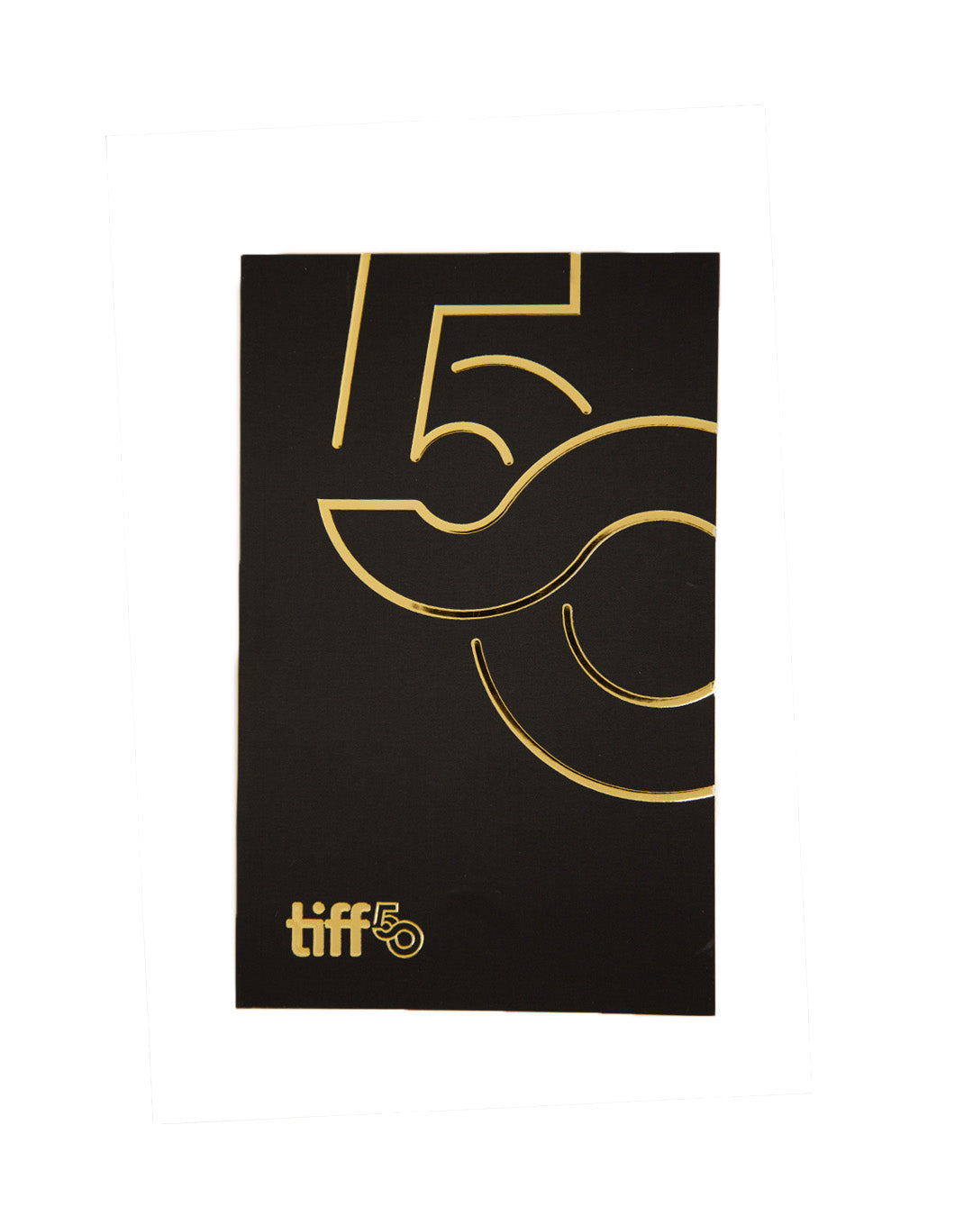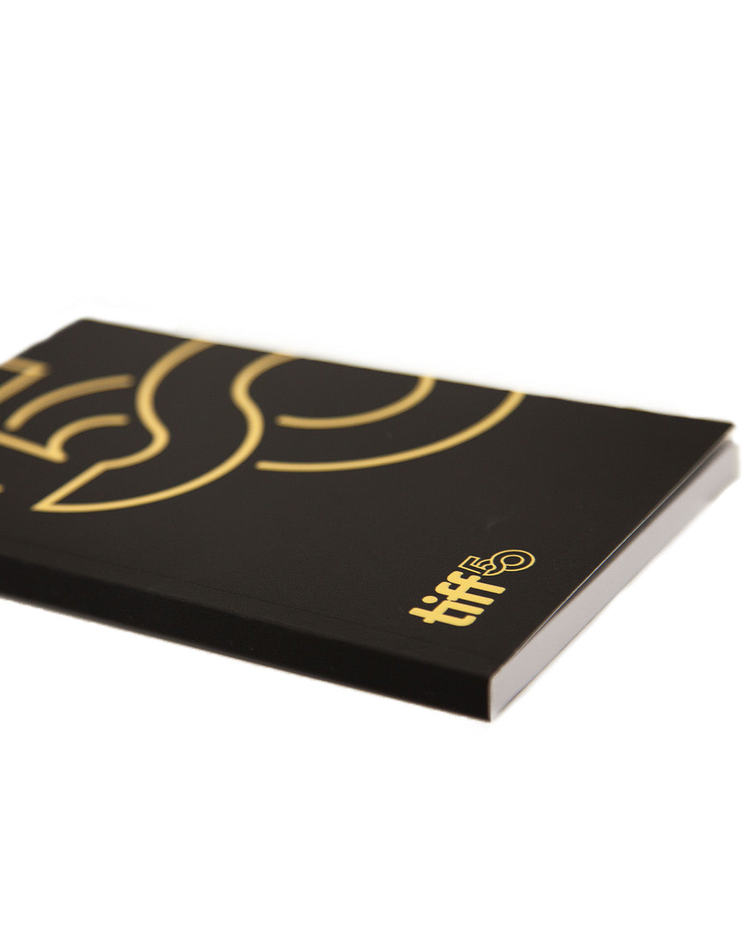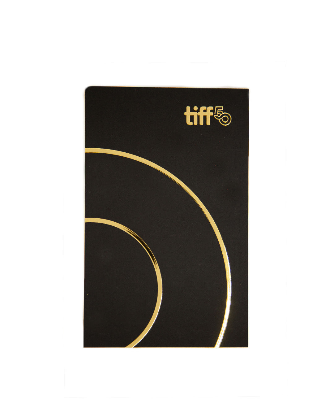Jot down your next movie idea. Our TIFF 50 logo in golden foil, embossed on a matte paper cover, will keep you inspired.