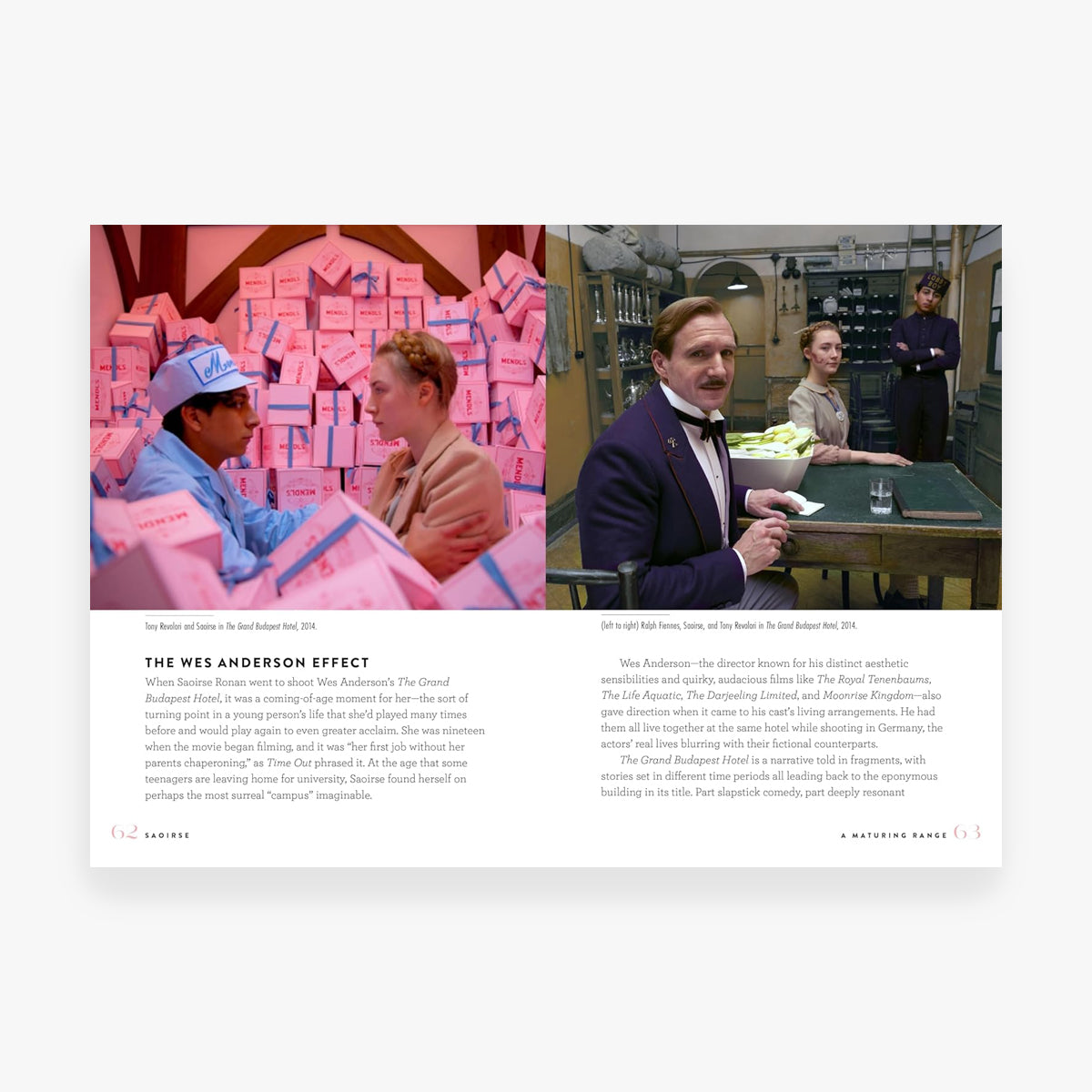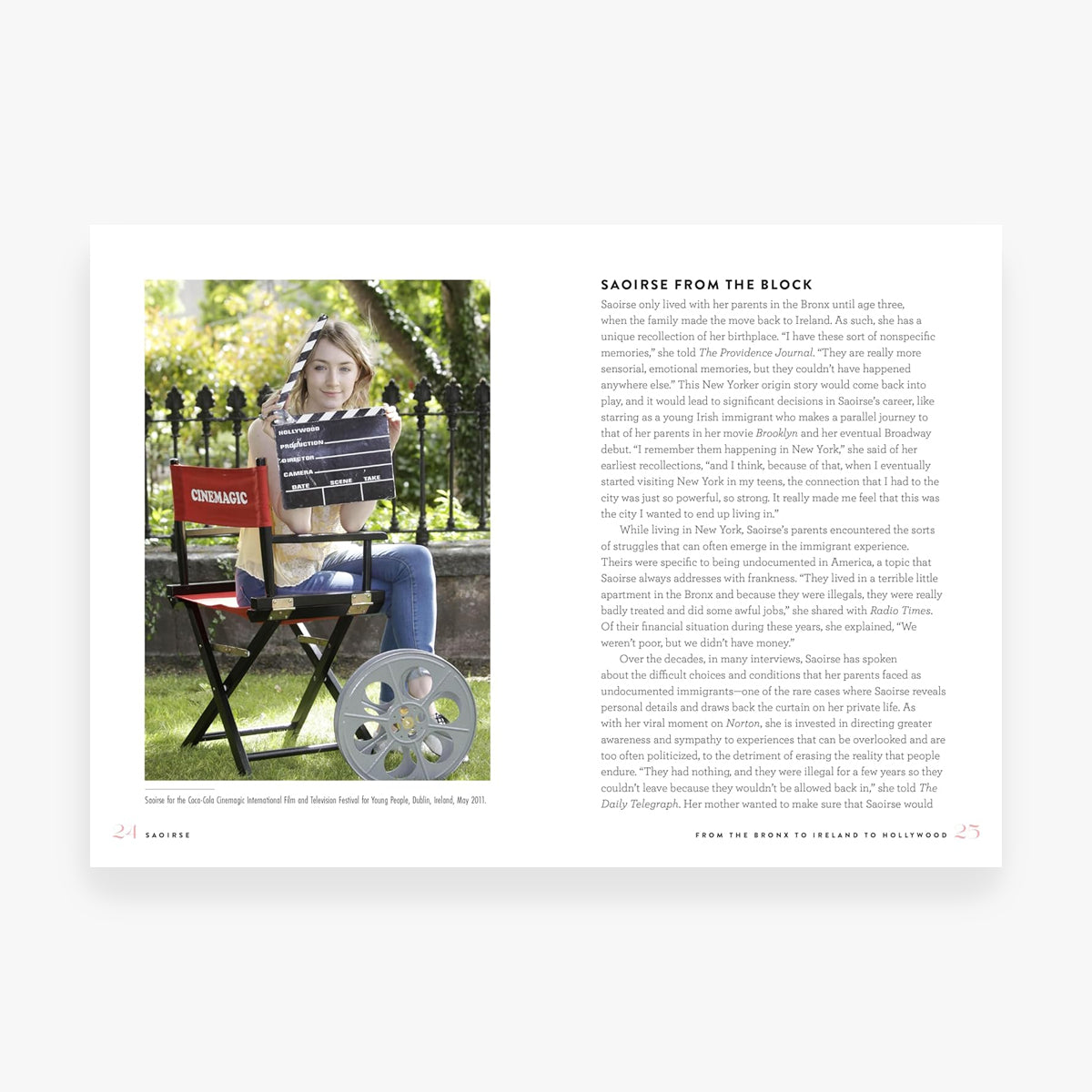 Saoirse charts many facets of the actress’s life and career, including: